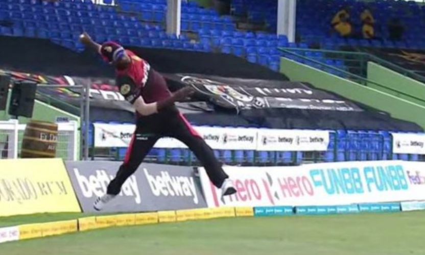 Nicholas Pooran, who was batting brilliantly on 27 runs from 15 deliveries, was dismissed by Rampaul in the 18th over. While it was not the best of deliveries, but the catch was outstanding. The video of Akeal Hosein taking an outrageous catch can be seen below as the Trinbago Knight Riders player took a full stretch jump to reach the ball with his left hand, just outside the boundary rope.