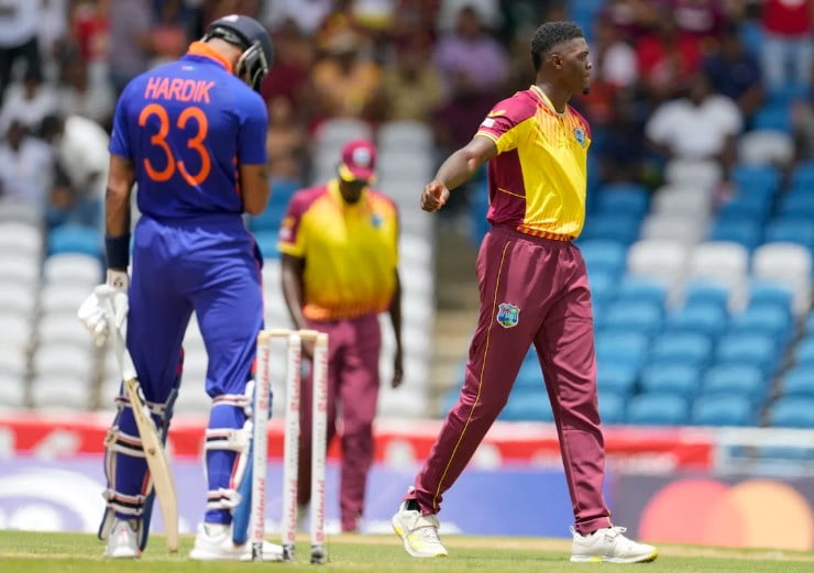 In the second T20I of the five-match series between India and the West Indies, pacer Alzarri Joseph showcased his brilliance with a stunning yorker that cleaned up the India captain Hardik Pandya. The West Indies had won the first game by 4 runs, successfully defending their score of 149.