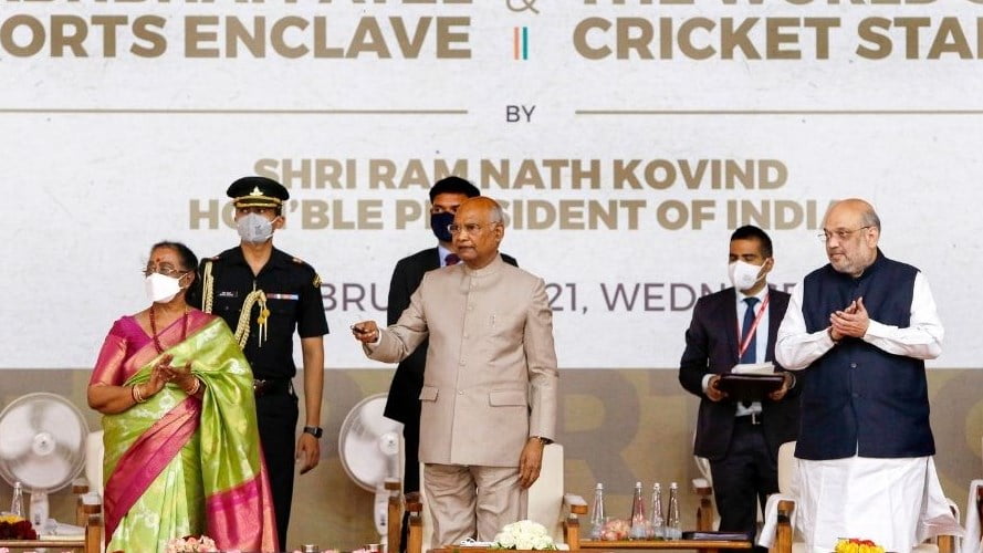President Ram Nath Kovind on Wednesday inaugurated the newly-built Sardar Patel Cricket Stadium, which was renamed the Narendra Modi Stadium ahead of the pink-ball Test between India and England. Home Minister Amit Shah and Union Minister for Youth Affairs and Sports Kiren Rijiju were also in attendance on the occasion.
