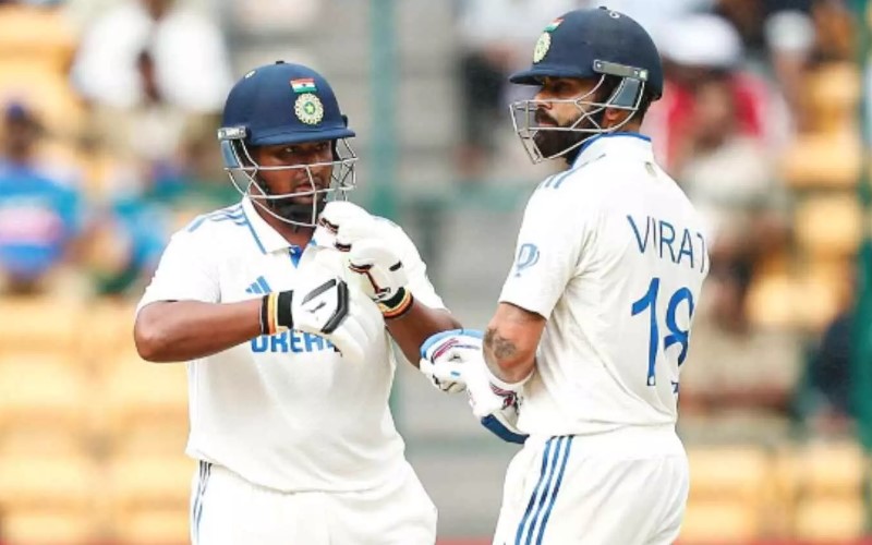 Skipper Rohit Sharma and Virat Kohli then came together to form a crucial partnership that lifted Indian hopes. Rohit, who looked comfortable at the crease, scored 52 off 63 deliveries before losing his wicket shortly after reaching his half-century. His departure brought Sarfaraz Khan to the crease, who joined forces with Kohli to build a steady third-wicket stand.