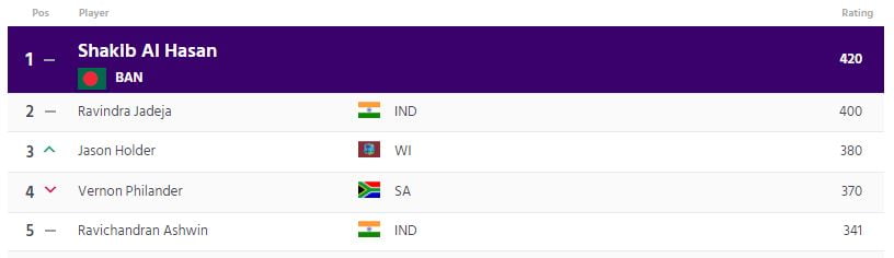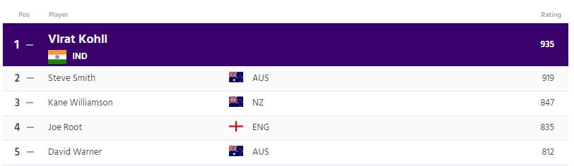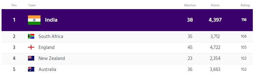 Australia, who started the series at 106 points and behind South Africa only on decimals, are now on 102 points, marginally behind New Zealand on decimal points. Meanwhile, Pakistan has made substantial growth in terms of points, in the list led by India with 116 points at the no.1 position.