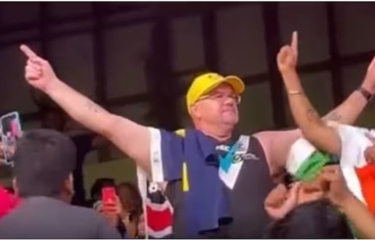 During the Australia vs Pakistan match at the M. Chinnaswamy Stadium in Bengaluru, an Australian fan grabbed the crowd’s attention after chanting slogans of ‘Bharat Mata Ki Jai’ aloud. He spread his arms above and chanted the slogan out loud, receiving huge support from the crowd as well.