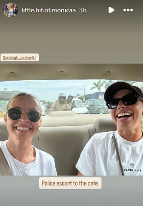 The Australian women’s cricket team seems to be finding some much-needed comfort after the recent disturbing incident in Indore. Star all-rounder Ashleigh Gardner’s wife, Monica Wright, shared a cheerful photo on Instagram showing the couple traveling to a café on Monday — with two Indian policemen escorting them on a motorbike right behind. Both Wright and Gardner were all smiles, as were the officers, one even flashing a peace sign, a light-hearted moment amid tense days.