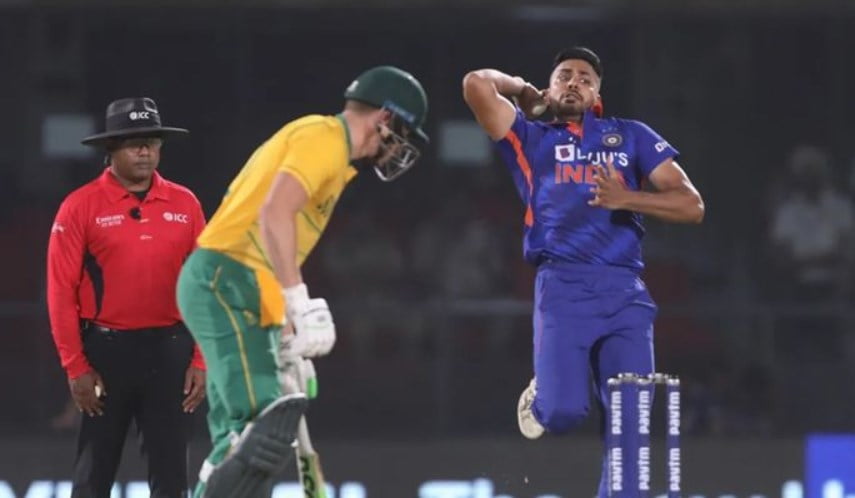 India and South Africa locked horns with each other in the first game of the five-match ODI series at the Arun Jaitley Stadium in Delhi. However, spectators witnessed a bizarre incident in the game as a near-perfect yorker from Avesh Khan broke Rassie van der Dussen’s bat into two parts.