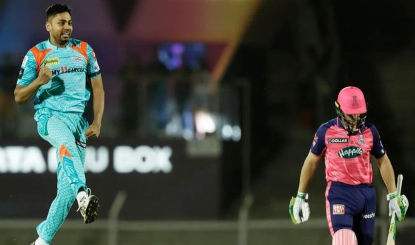 The 63rd match of the Indian Premier League (IPL) 2022 is being played between the new entrants Lucknow Super Giants (LSG) and Rajasthan Royals (RR) on 15th May at the Brabourne Stadium in Mumbai. RR suffered early blow when the LSG pacer, Avesh Khan cleaned up the in-form opener, Jos Buttler in the 3rd over itself.