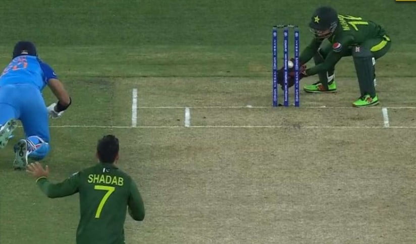 On the first ball of the 7th over, Axar Patel dabbed the ball towards midwicket and he was looking to steal a single but Virat Kohli sent in back after coming off half the pitch. On first look, it seemed like Mohammad Rizwan made a mess of the run-out as he fumbled to collect the throw from the skipper, Babar Azam.