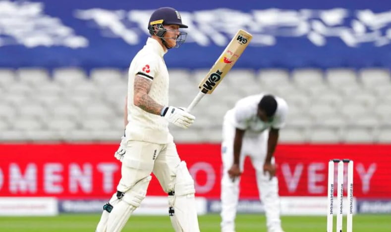 Stokes remained unbeaten on 78 off just 57 balls after resuming on his overnight score of 16 as he amassed 3 sixes and 4 boundaries in the entertaining innings. Resuming on their overnight score of 37-2, the English all-rounder wasted no time as he started smashing the West Indies bowlers all around the empty Old Trafford. Joe Root also scored a quick-fire 22 and was run out before England declared on 129 for 3.