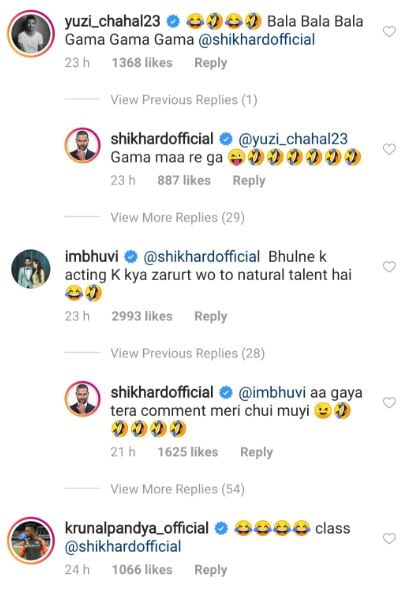 The veteran Indian pacer, Bhuvneshwar Kumar decided to troll Dhawan for the same. where it hurts. Dhawan did the act perfectly with Khaleel and Chahal. He was lauded by his teammates and the fans on social media. But Kumar came up with a savage response on the post. He said, “Bhulne k acting k kya zarurt wo to natural talent hai”.