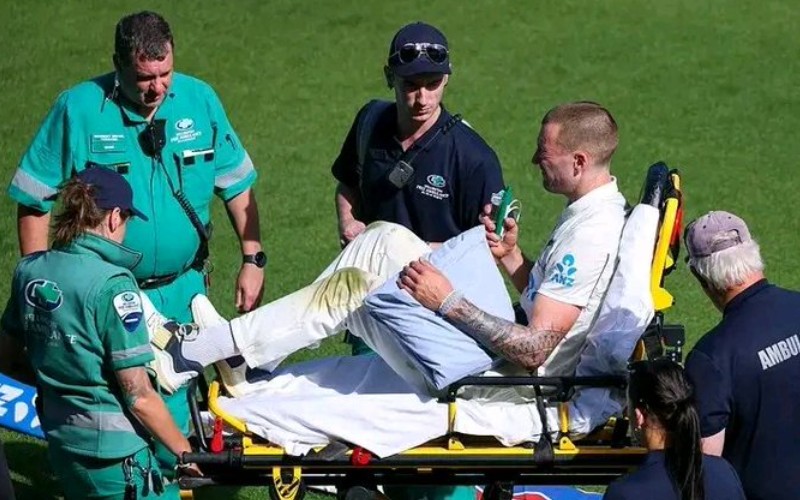 Medical staff from both New Zealand and the venue rushed to his aid, treating him on the boundary line before he was stretchered off the field to a warm round of applause from the Basin Reserve crowd. He remained upright on the stretcher but was visibly in discomfort and was later transported to a nearby hospital by ambulance for further scans and treatment.