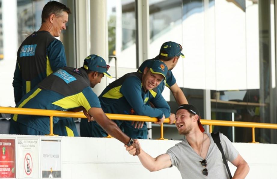 The Australian cricket team needs to work very hard to save the ongoing four-match Test series against India as the visitors are leading the series by 1-0. While the hosts have been sweating it out in the training sessions, they got to meet with a familiar person, as Cameron Bancroft paid them a visit, who is on the brink of completing his nine-month suspension.
