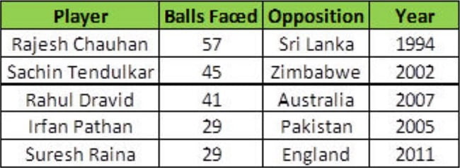 After having endured that burst from the fast bowlers, Cheteshwar finally got off the mark on the 54th ball of his innings. This way, he saved himself from getting an unwanted record — of taking the most deliveries to open the account by an Indian. The record is held by former India spinner Rajesh Chauhan, who took 57 deliveries to open his account against Sri Lanka in 1994.