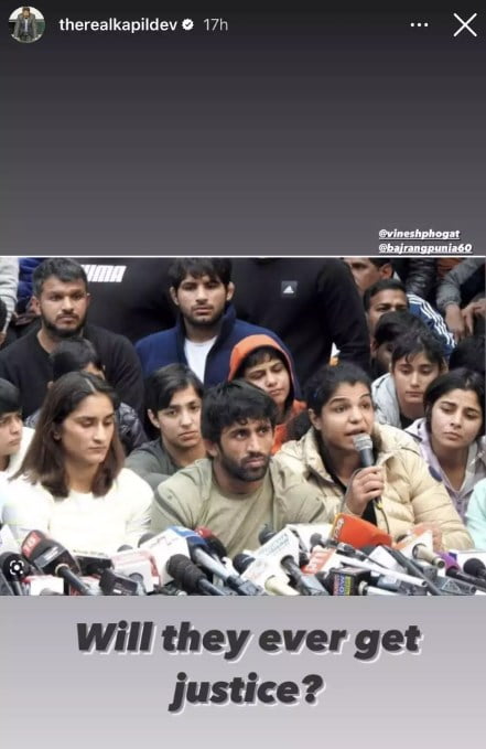 On Friday (April 28), plenty of retired Indian cricketers, including 1983 World Cup winning skipper, Kapil Dev, came out in support of the wrestlers. ‘Will They Ever Get Justice,’ wrote Kapil on Instagram. Former India spinner Harbhajan and former Indian fast bowler, Irfan Pathan also showed solidarity with the wrestlers. Legendary Indian opening batter Virender Sehwag also did not shy away from giving his full support to the wrestlers and asking for justice.