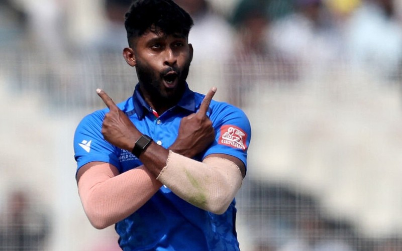 After already pulling off a stunning catch earlier in the innings, Kalugamage delivered a fast, full ball angled into West Indies skipper Shai Hope, who was anchoring the innings beautifully on 75. Shai Hope attempted a hard sweep, dropping to one knee, but missed completely.