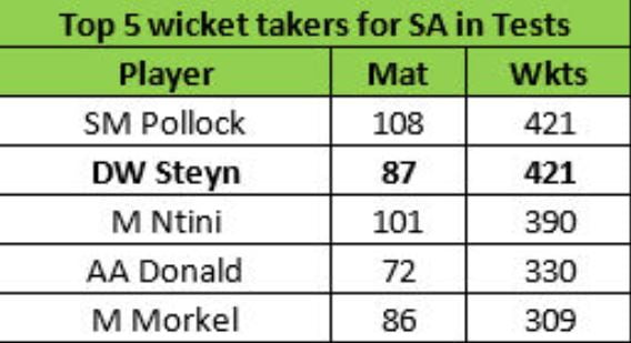 Ahead of the first Test against Sri Lanka, Steyn had scalped as many as 419 Test wickets as he had played his last Test in January this year against India. He was returning to cricket after a gap of 13 months after going sustaining a shoulder injury. However, as luck would have it, he broke down after bowling 17.3 overs and taking two wickets in the Cape Town Test, suffering a muscle tear in his left heel.