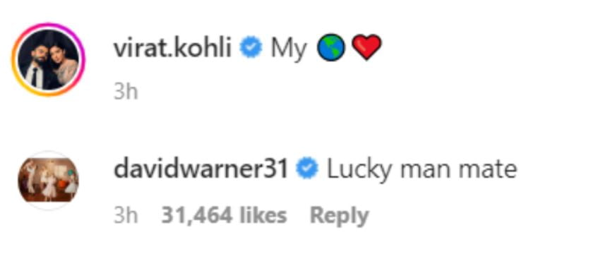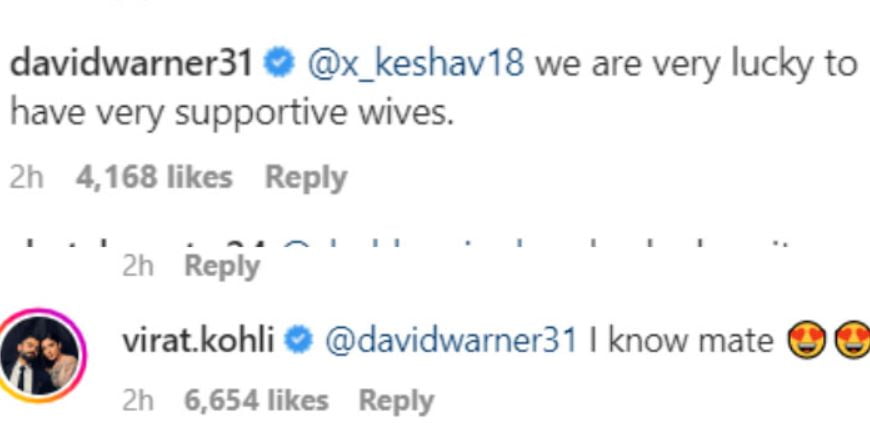 The Australia opener then responded to a couple of fans, explaining his reply to the heartwarming post from Virat Kohli. “We are very lucky to have supportive wives,” Warner responded to a comment.