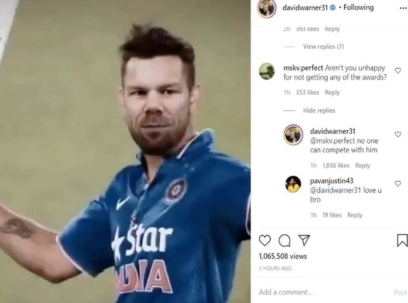 Within no time, the post started going viral with more than 10 lakh views in less than an hour and the fans flooded the post with their replies. When a follower asked Warner if he was unhappy that he failed to make it to receive one of the awards, the explosive opener said: “No one can compete with him”.