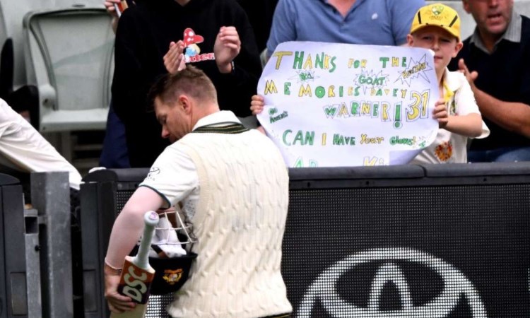 The crowd’s response moved him, prompting him to wave his bat in acknowledgment and offer a thumbs-up. In a heartwarming gesture, Warner handed his batting gloves to an excited young fan eagerly awaiting a high-five from the veteran Australian batter.