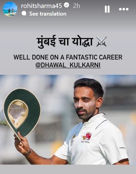 The 35-year-old pacer bagged six wickets in the final, including the crucial last wicket that sealed the win for Mumbai. Rohit Sharma, sharing his admiration on Instagram, called Dhawal Kulkarni “Mumbaicha Yoddha” (Warrior of Mumbai). Their shared history as Mumbai teammates shines through in this tribute, highlighting Kulkarni’s dedication to state cricket.