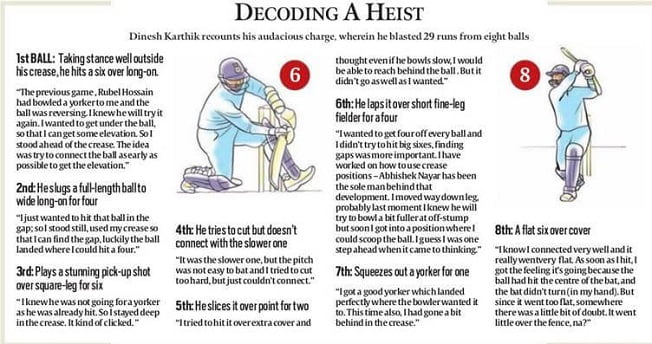 The reporter then asked Karthik to describe the way he faced the 19th over of Rubel Hossain. Decoding those six balls, Karthik said:
