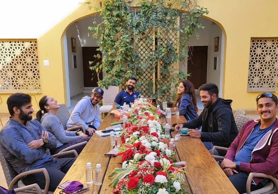 In the pictures shared by Hanhvi Kapoor, the actors can be seen sporting a cricket helmet. She also shared a snap of veteran Indian wicket-keeper batter Dinesh Karthik practicing in the nets. Janhvi can also be seen chilling alongside Karthik, film’s director Sharan Sharma and former Indian cricketer Abhishek Nayar, who is known to be a close friend of Dinesh Karthik. These pictures convinced fans about the movie being based on cricket.