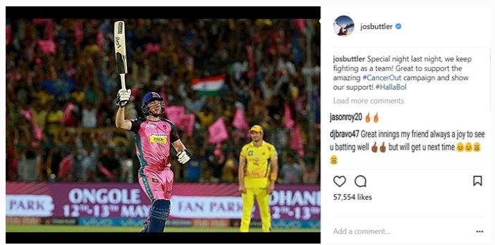 Well, this was how Buttler celebrated his best moment in this season. Meanwhile, CSK death over specialist, DJ Bravo, who failed to restrict Buttler from successfully chasing down the target, took a funny jibe on Buttler’s post. After a demoralizing loss, DJ commented on Buttler’s post and warned him that he ‘will get him next time’.