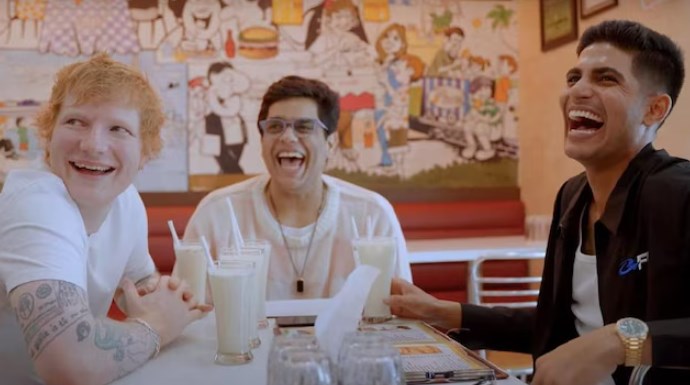 Off the field, Shubman Gill found himself in the spotlight once again as he crossed paths with renowned singer Ed Sheeran. During their interaction, Sheeran humorously inquired about Gill’s relationship status, to which the cricketer responded with a resounding “NO.” Sheeran, with a playful grin, quipped “On the Market” to the camera before sharing a photo of some cricketers, purportedly sent by a friend of his wife.