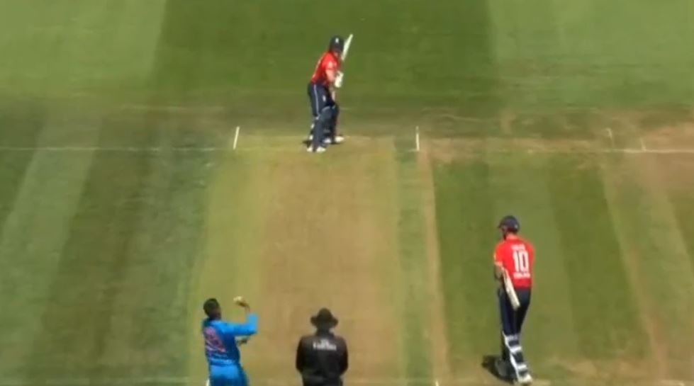 On the very next ball, the English skipper top-edged it and the ball went straight up again and MS Dhoni took a comfortable catch. Dhoni ran in to take the catch, then performed a little forward roll for effect after clattering the stumps. However, on the last bowl of the over, it was against caught by Dhoni and bowled by Hardik. It became two in the over for Pandya as he bowled another cutter and it cramped Alex Hales, who tried to guide the ball off the back foot, just deflected through to the keeper.