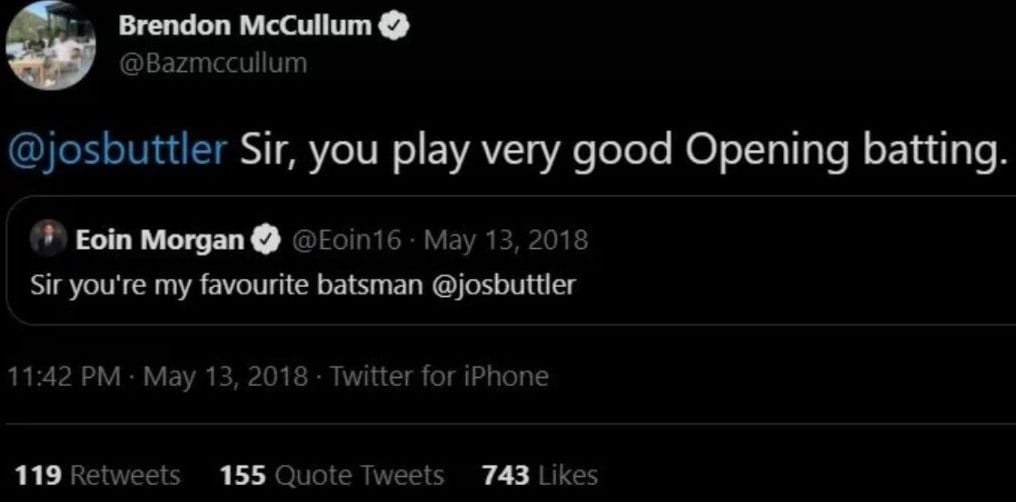 Reading the same, report in Telegraph.co.uk. read: “Screenshots have also been shared of a message by Buttler in which he says “I always reply sir no1 else like me like you like me’ and, separately, Morgan includes Buttler in a message which says, “Sir you’re my favourite batsman”.”