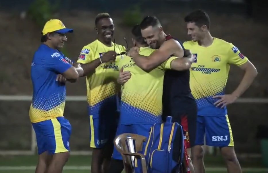 In the videos circulating on social media, Faf du Plessis can be seen reuniting with his former CSK teammates and they have a great time. In the videos, Virat Kohli can also be seen gelling with some of the CSK players.