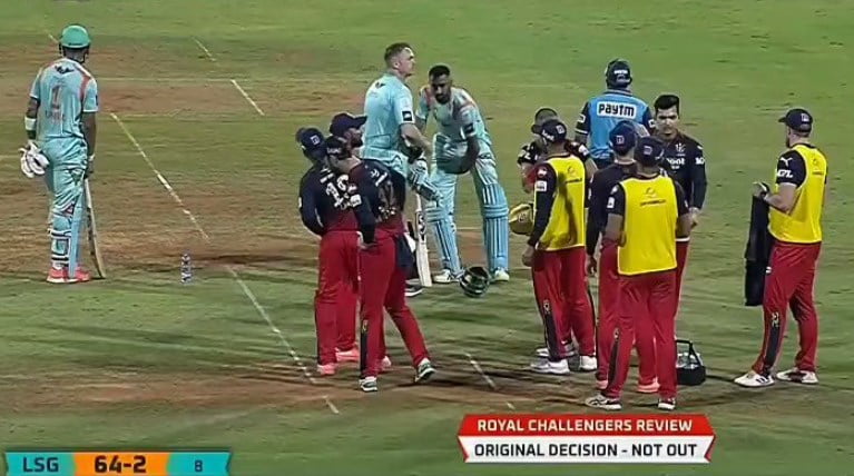 Lucknow Super Giants (LSG) failed to witness a good start while chasing the target of 182 runs against Royal Challengers Bangalore (RCB as they were down to 64/3 in 8 overs. Skipper KL Rahul’s wicket came as a surprise to everyone as his RCB counterpart nailed the DRS call and helped his team to get a crucial wicket in the 8th over. Faf du Plessis’ 96 helped RCB to set a target of 182 for victory against LSG.