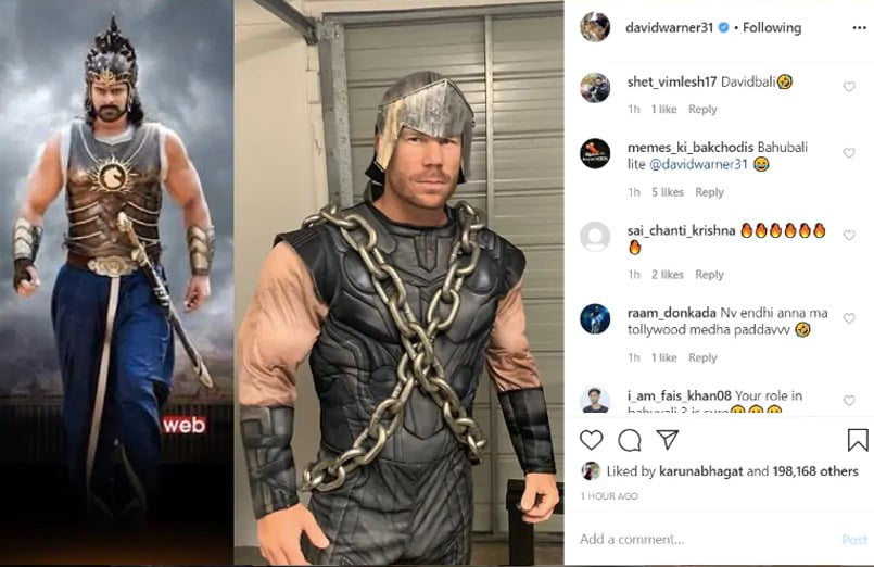 Captioning the post in Instagram, Warner said, “Who’s costume do you prefer? @baahubalimovie #bahubali #prabhas #funny #fun.”Soon after Warner posted the picture, fans flooded the comments section and one fan even called Warner “Davidbali”.