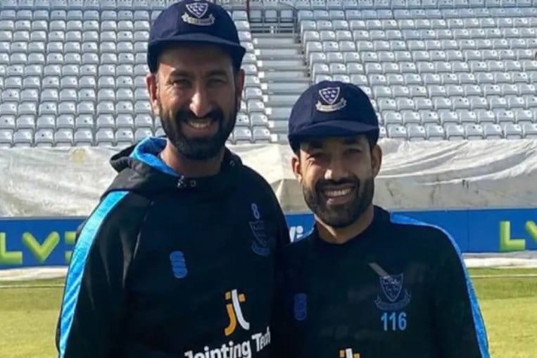 The duo of Cheteshwar Pujara and Mohammad Rizwan was seen having an excellent partnership during Day 3 of Sussex’s match County Championship match against Durham on Saturday. Pujara, who seems to be going through a purple patch since the beginning of his stint with Sussex, racked up his second double-century for the team, scoring 203 off 334 deliveries, and forged a 154-run stand with Rizwan, who also scored an important 79 off 145 balls.