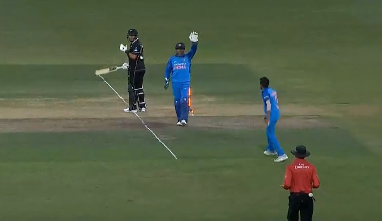 On the very first ball of the 18th over of New Zealand’s chase, Kedar Jadhav got the crucial wicket of in-form Kiwi batsman Ross Taylor. The bowled outside off and beat the batsman. Dhoni was quick enough to flip the bails and the umpires decided to go upstairs as they wanted to confirm that if the back foot was in the air when Dhoni whipped the bails off.