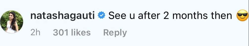His post went viral on the internet. Interestingly, the post also caught the attention of his wife Natasa Jain who decided to give a reply as well. She wrote, “See u after 2 months then”