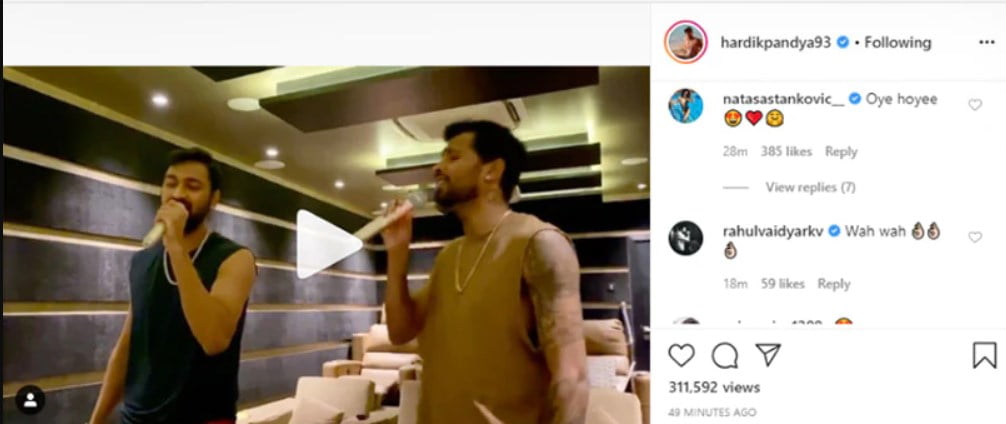 While many of his fans flooded Hardik Pandya’s Instagram post with heartwarming messages, his fiancee Natasa Stankovic grabbed a lot of eyeballs with her comment. Expressing awe at Hardik Pandya’s karaoke skills, Natasa commented, “Oye hoyee” along with a red heart emoji, a heart-eyes emoji, and a hugging face emoji.