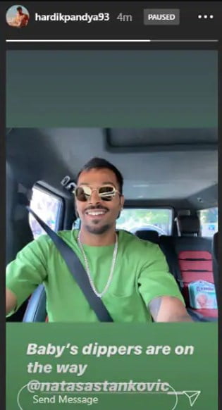 In the snapshot, Hardik can be seen driving a car with baby diapers lying on the back seat of his car. The Indian all-rounder took to Instagram to share that he and his Serbian partner Natasa Stankovic became proud parents of a baby boy. Captioning the picture of the new-born baby on Instagram, Pandya wrote: “We are blessed with our baby boy”.