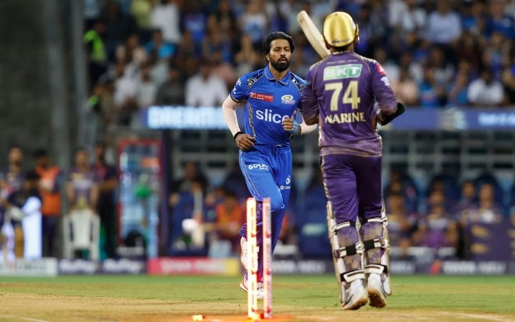 Nuwan Thushara set the tone for MI with three quick wickets, rattling the KKR batting lineup. Following Thushara’s breakthroughs, Hardik Pandya stepped up with an outstanding performance. In the fifth over, Pandya’s delivery proved too much for the in-form Sunil Narine, who lost his wicket as his stump was knocked over.