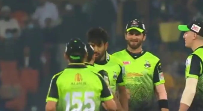 Even though Ghulam was seen smiling, Hais Rauf was seen giving him a serious look at him on a couple of occasions. Nonetheless, things did not end there as the slap seemed to have charged up Ghulam who effected a brilliant run out to get rid of Peshawar skipper Wahab Riaz in the 17th over. Haris Rauf eventually came and hugged the fielder.