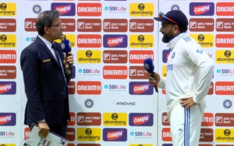 Presentation ceremony hosted by noted commentator Harsha Bhogle after India was crushed to a pulp by New Zealand in the first Test on October 20th. Under protocol, both teams’ captains normally go for post-match interviews to give voice to their thoughts about the game played. However, Harsha Bhogle surprised everyone this time as he assured Rohit Sharma, India’s captain, not to take too much of a beating from him given the throttling handed over by New Zealand at Bengaluru.