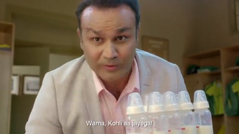 Firstly it was Sehwag began the babysitting commercial, where he can be seen with a bunch of kids wearing Australian jerseys, saying: “Jab hum Australia gaye the, toh unhone poocha tha babysitting karoge? Humne kahaa sabke sab aajaao. Zaroor karenge [When we had gone to Australia, they asked us, will you babysit? We said all of you come, we will surely do].”