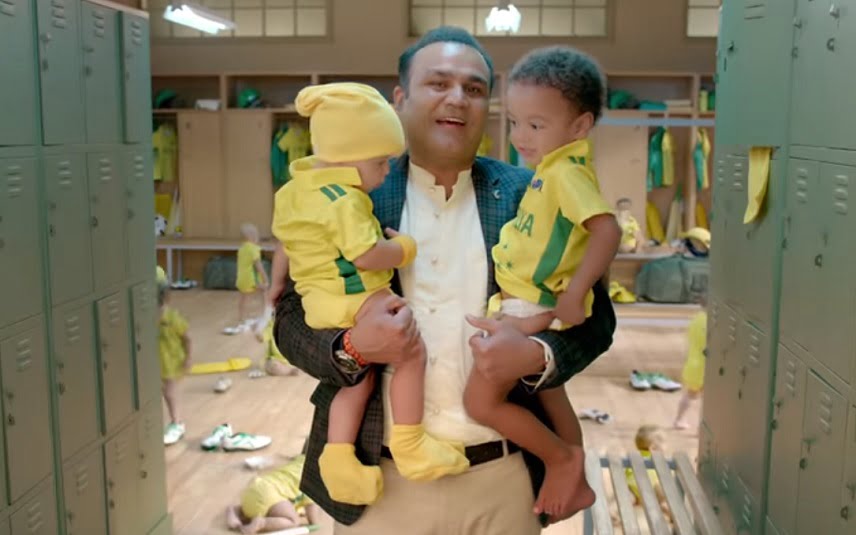Sehwag was seen with babies dressed in Australian jersey saying, “Jab hum Australia gaye the, toh unhone poocha tha babysitting karoge? Humne kaha sabke sab aajaao. Zaroor karenge.”