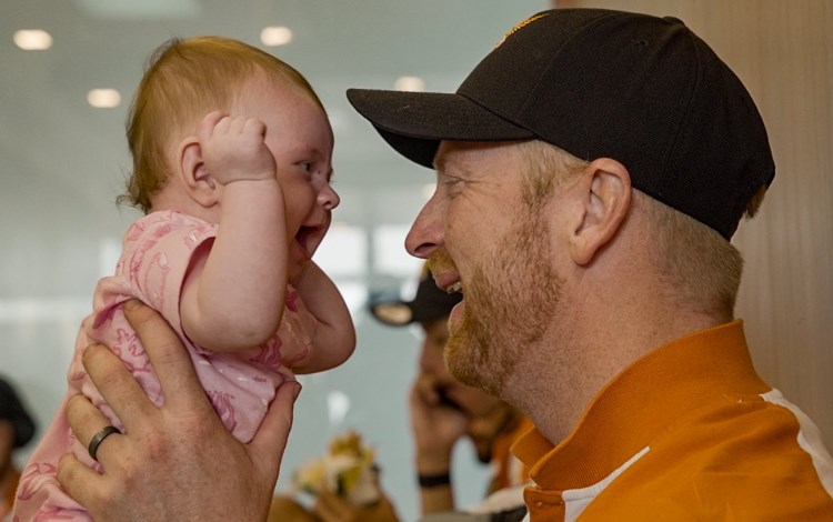 The best seat in the house? Right next to dad’s biggest fan! ๐๏ธ๐งก