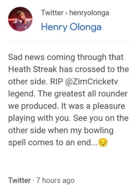 One Twitter user pointed out, “Henry Olonga is one of the people who posted about Heath Streak’s death, media houses saw his tweet and ran with it, he deleted his tweet never apologized for the misinformation he was spreading, and confirmed Heath is alive. You have access to the family but you ran to Twitter.”