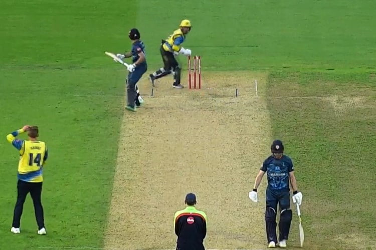 Despite Warwickshire’s wicketkeeper, Alex Davies initially fumbling the ball, Haider’s lackadaisical attempt to return to the crease presented Davies with another chance to effect the stumping. Seizing the opportunity, Davies quickly dislodged the bails, leaving Haider in a state of disbelief.