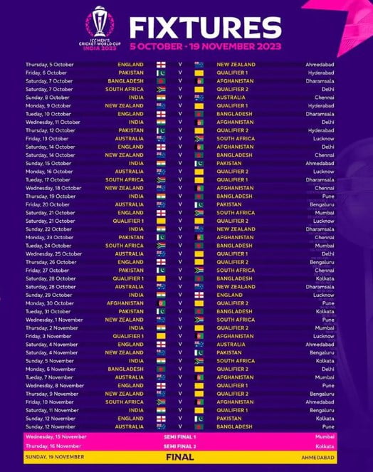 The ICC Men’s @cricketworldcup 2023 schedule is out now ⬇️#CWC23https://t.co/j62Erj3d2c