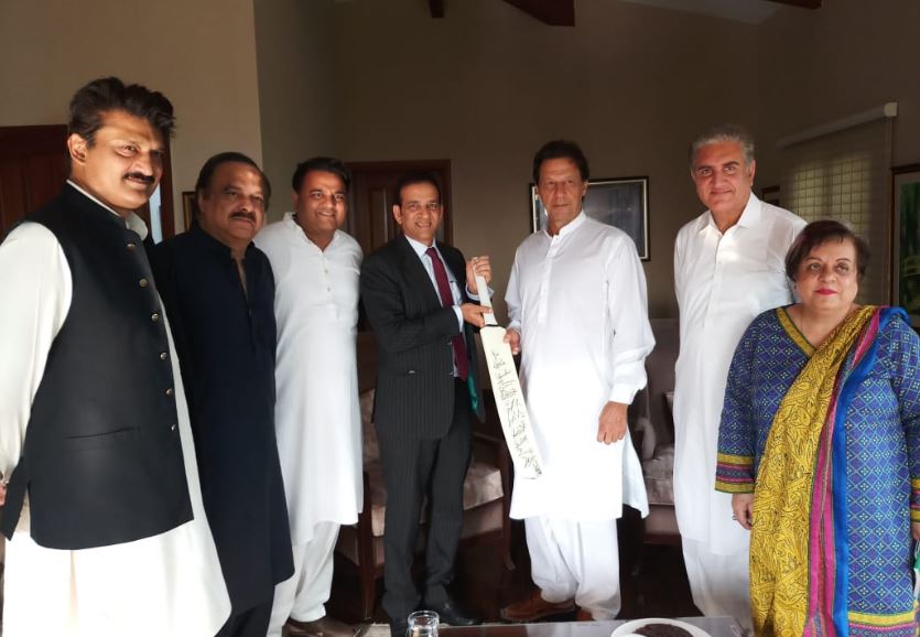Indian HC Ajay Bisaria called on Mr Imran Khan, Chairperson & senior leadership of PTI. HC congratulated @ImranKhanPTI on his electoral success, discussed range of issues, prospects of India-Pak relationship. HC gifted a cricket bat autographed by the entire Indian cricket team. pic.twitter.com/xtdZ8H8ZQ5