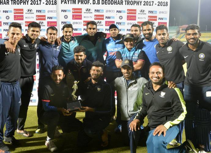 India ‘B’, with a complete team performance, outclassed the good show by Karnataka middle-order batsmen, R. Samarth (107) and C.M. Gautam (76) in the final of the Deodhar Trophy cricket tournament in Dharamsala on Thursday.