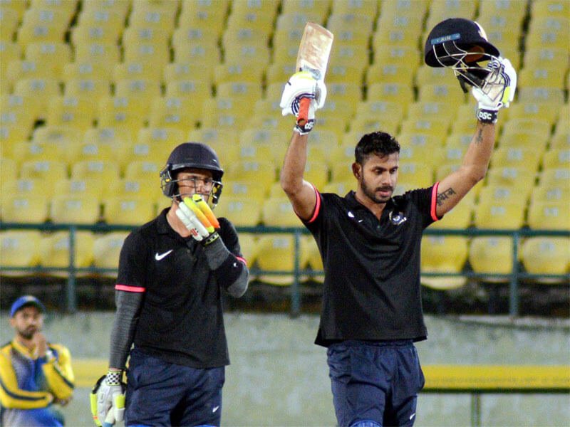 Karnataka 279/8 in 50 overs (Samarth 107, Gautam 76, Ahmed 3-49) defeated by India ‘B’ 281/4 in 48.2 overs (Easwaran 69, Iyer 61, Tiwary 59, Shreyas 2-55) by six wickets.