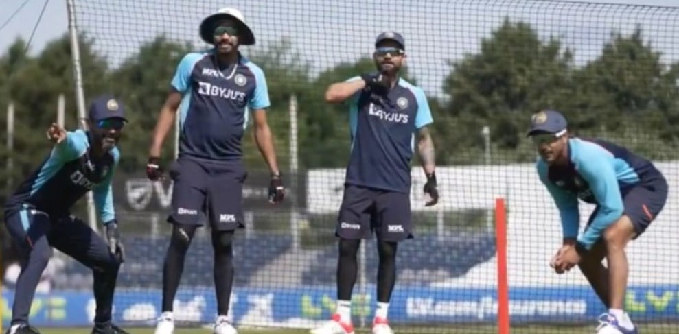 The Indian Test squad was seen getting involved in a fun-filled fielding drill session on the eve of their 3-day practice match against County Select XI in Durham. Under the observing eyes of fielding coach R Sridhar, the Indian players were split into two groups as they warmed up to the first competitive game after the loss in the World Test Championship final. Accoridng to Sridhar, the Indian players were involved in competitive team drills, which comprised of catching, direct hits, and throwing, according to Sridhar.