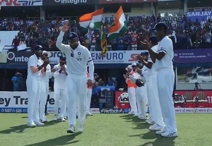 The Indian skipper, Rohit Sharma, gestured the milestone man, Virat Kohli to come to the field once again so that the players can give the former Indian skipper the guard of honor. Rohitโs actions won a lot of hearts of Indian fans on social media.ย The Indian players did a special gesture for Virat Kohli as he is playing his 100th Test in the ongoing opening game of the two-match Test series against Sri Lanka at the PCA Stadium in Mohali.